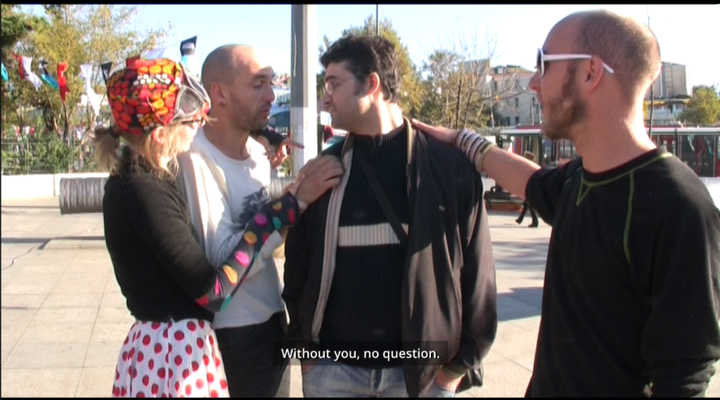 “Our bodies need this” documents a part of the 24 hour durational performance “Beyond the Box”, which took place on Beşiktaş square in Istanbul in 2010. Three performers are conducting massage, bodywork and contact improvisation, and as people interact, the cameraman becomes not only interpreter, but also an agent in a discourse on the relevance of contemporary performance art in public space.